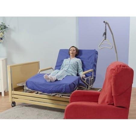 Pivote et relève pour faciliter l’aide au lever ou au coucher ! Le lit EASY UP permet aux personnes qui rencontrent des difficultés pour accéder ou descendre de leur lit de le faire en toute sécurité. Sortir du lit ou se mettre au lit deviennent ainsi beaucoup plus facile. Grâce à ses 6 moteurs, il offre la possibilité de nombreuses positions pour conjuguer ergonomie et confort. Ces différents moteurs sont actionnés à l’aide d’une seule télécommande, dont les pictogrammes facilitent son utilisation. 2 moteurs indépendants, permettent de relever le buste ou les jambes. (combinai... |